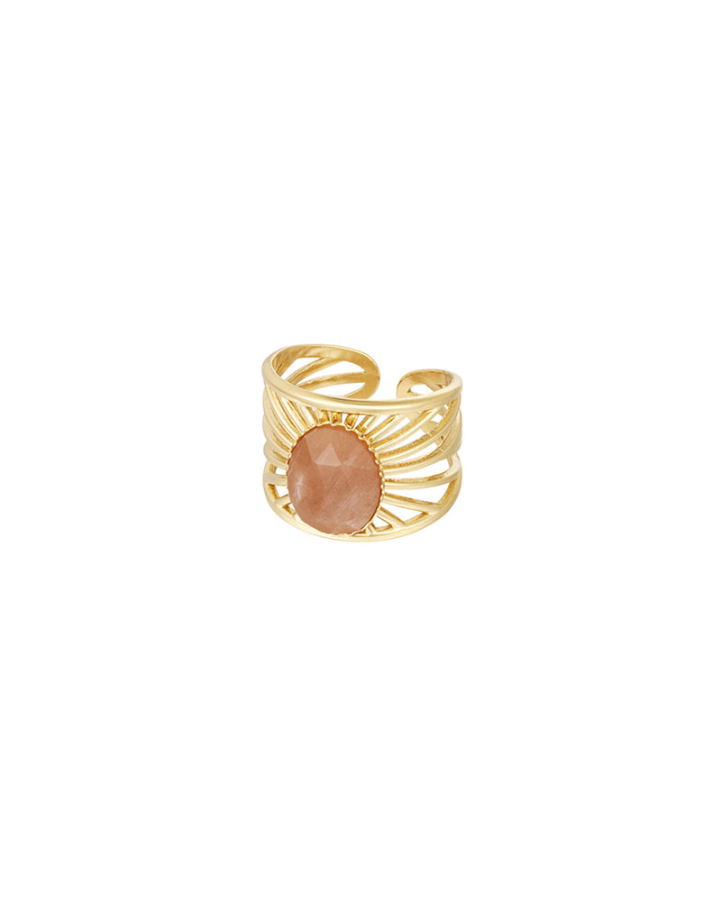 Look at this beautiful gold ring with green stone! The ring has a beautiful structure which gives the ring a luxurious look. Very nice to combine this ring with several rings and matching jewelry.
